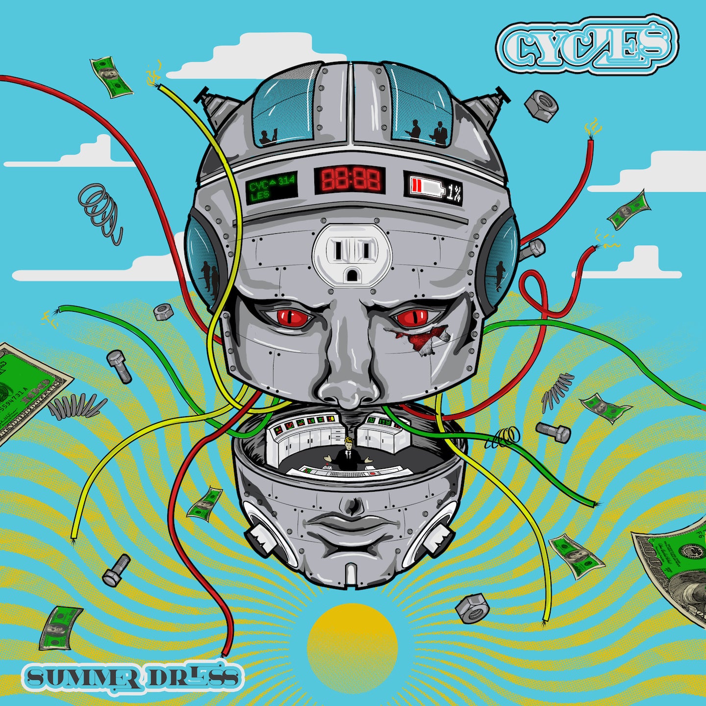 Cycles epitomize the power-trio format with ripping guitar, fat bass grooves played, and viciously dynamic drum beats flowing over intricate tempo changes. The band's first release on Color Red, 'Summer Dress' molds into the soft jam sound with ambient flows and poetic lyrics. Then, with a quick u-turn, the track evolves into a funk pounding, slap bass, rippin guitar jam that puts the predictable smile on any Cycles fan's face.